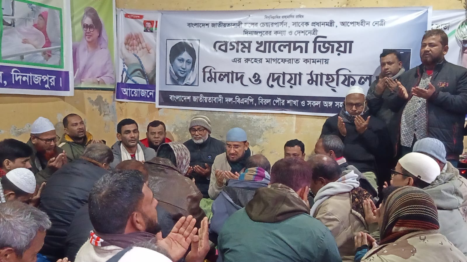 বিএনপি চেয়ারপারসন ও সাবেক প্রধানমন্ত্রী বেগম খালেদা জিয়ার রুহের মাগফিরাত কামনায় বিরল পৌর বিএনপি ও অংগ সহযোগী সংগঠনসমূহের আয়োজনে মিলাদ