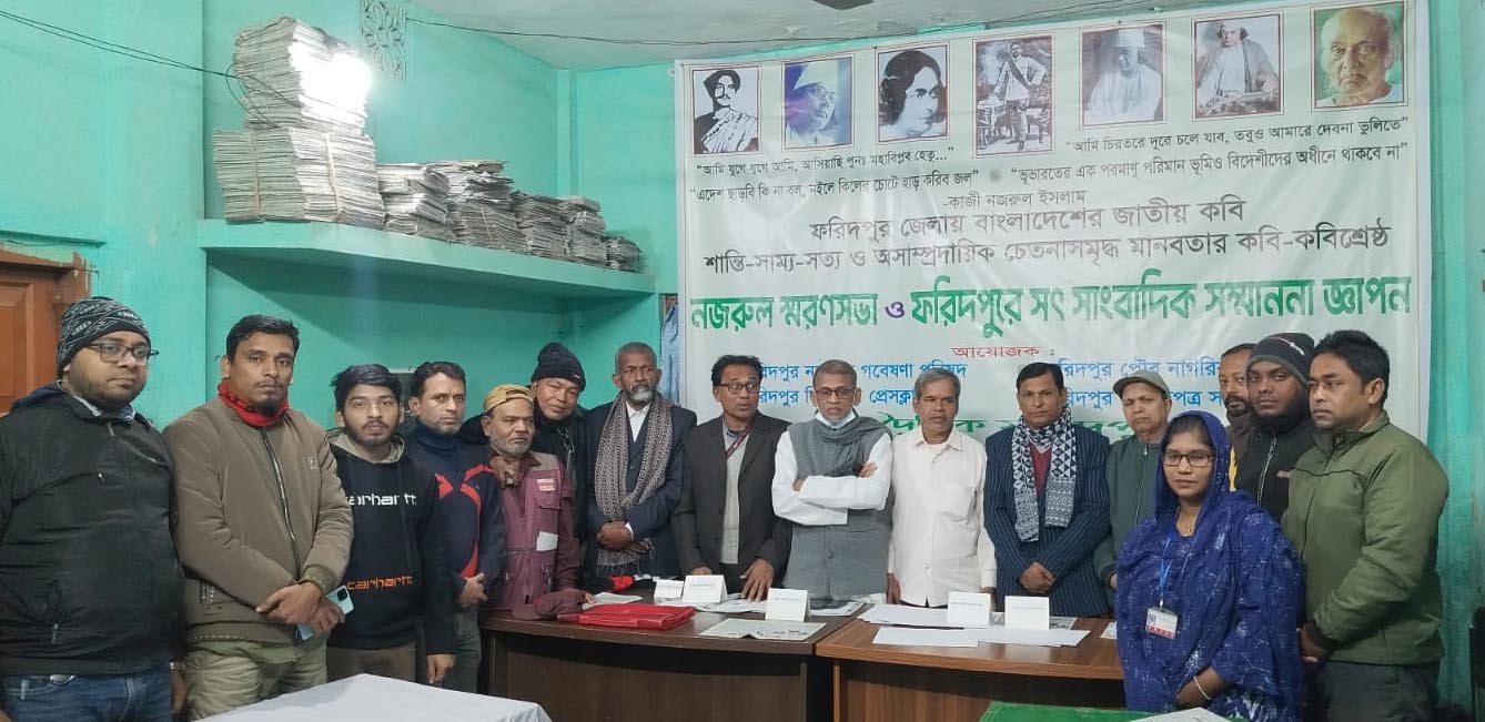 নজরুল স্মরণসভায় দাঁড়িয়ে শ্রদ্ধা জ্ঞাপনের মাধ্যমে রোববার ফরিদপুর নজরুল গবেষণা পরিষদ, ফরিদপুর পৌর নাগরিক সমিতি, ফরিদপুর বিভাগীয় প্রেসক্লাব ও দৈনিক