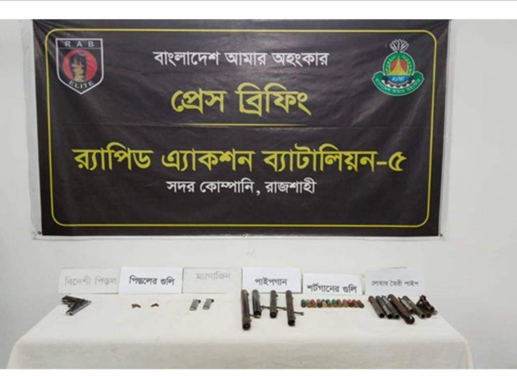 তানোরে র‍্যাবের অভিযানে বিপুল অস্ত্র উদ্ধার