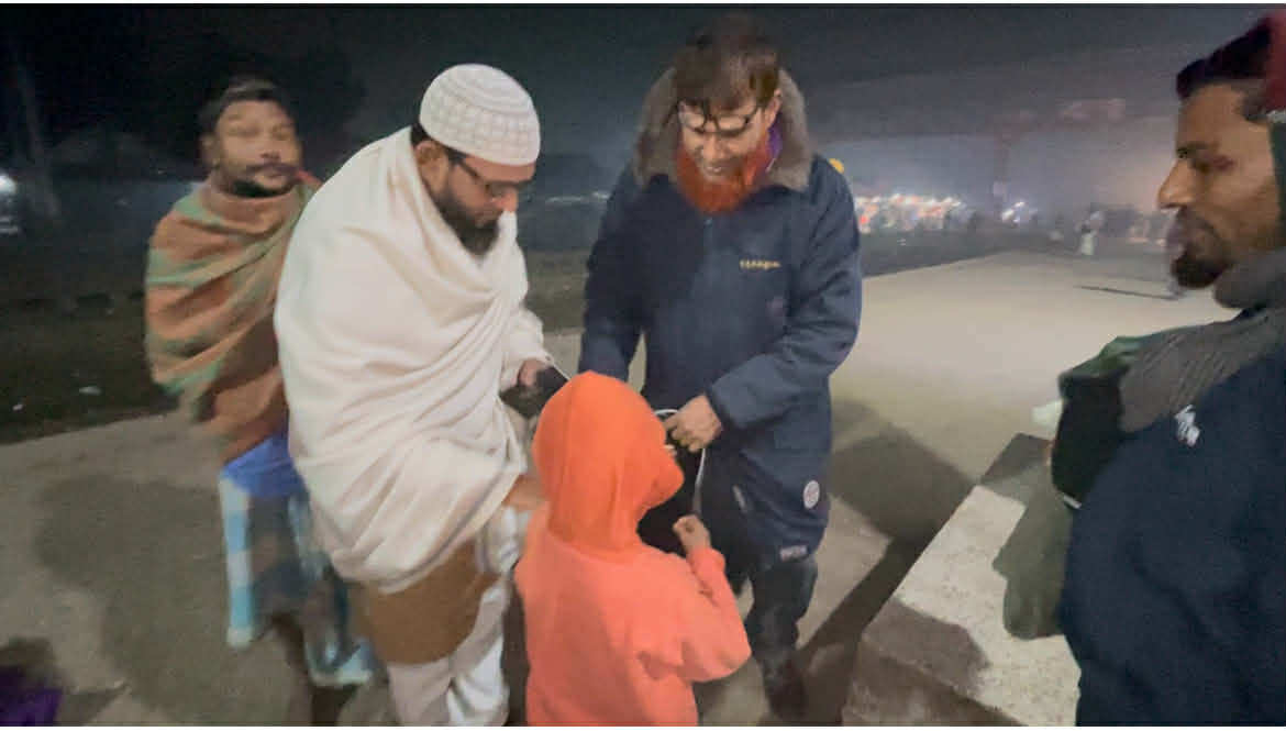 গাজীপুর জেলার শ্রীপুর উপজেলা সদরে ভাসমান ও অসহায় শিশুদের মধ্যে শ্রীপুর উপজেলা প্রেস ক্লাব শীত নিবারণের জন্য মোটা পোষাক বিতরণ