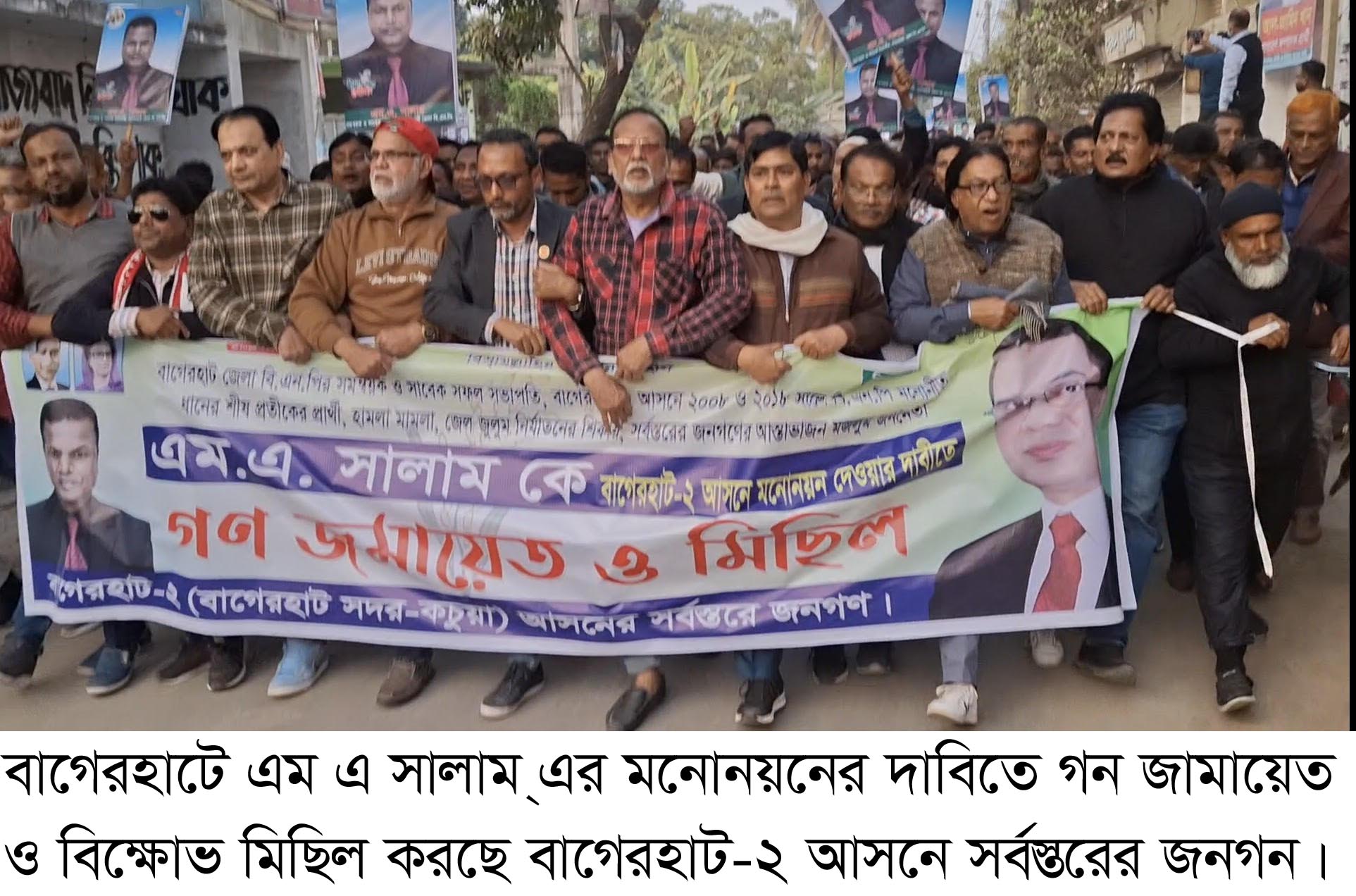 বাগেরহাট জেলা বিএনপির সাবেক সভাপতি ও সমন্বয়ক এম এ সালামকে মনোনয়ন দেওয়ার দাবিতে গন জামায়েত ও বিক্ষোভ মিছিল করেছে বাগেরহাট-২