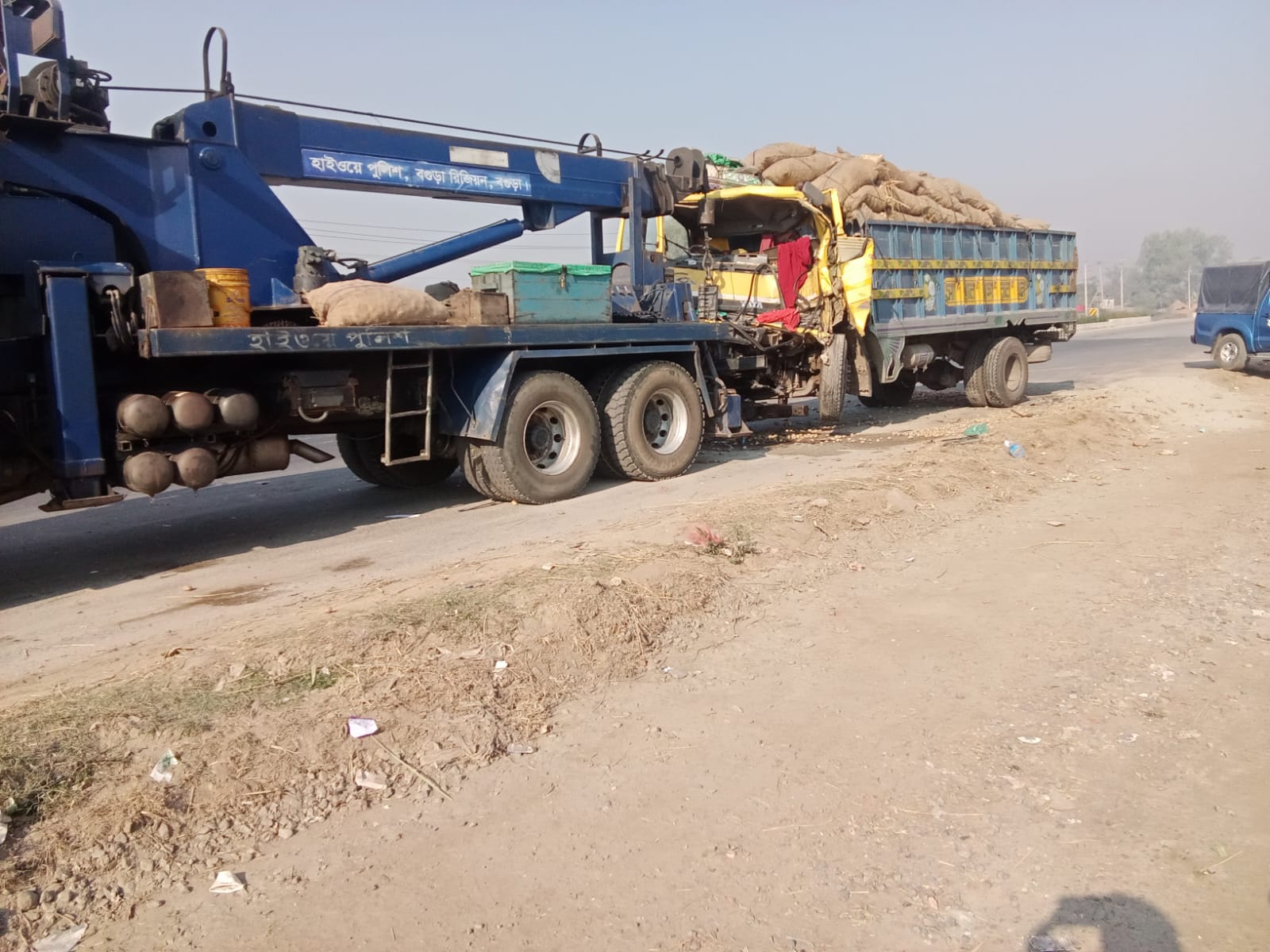 বগুড়ার শেরপুরে নাবিল হাইওয়ে রোডের দক্ষিণ পার্শ্বে দাঁড়িয়ে থাকা একটি বালুবোঝাই ট্রাককে পেছন থেকে একটি আলুবোঝাই ট্রাক ধাক্কা দিলে দুইজন