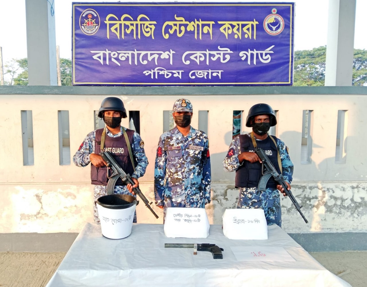 কোস্টগার্ড পশ্চিম জোনের একটি আভিযানিক দল গোপন সংবাদের ভিত্তিতে সুন্দরবনের বুড়িগোয়ালিনী এলাকায় অভিযান পরিচালনা করে ১টি দেশীয় পিস্তল, ১ রাউন্ড
