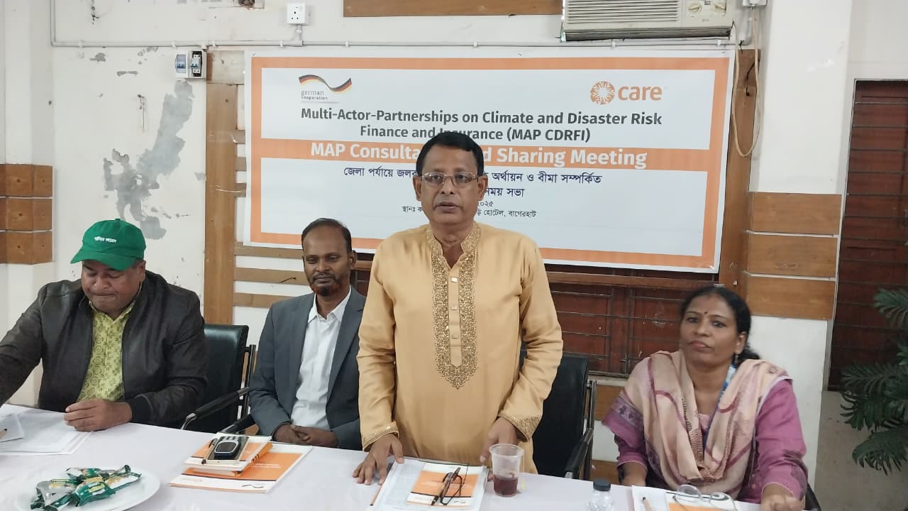 বাগেরহাটে জেলা পর্যায়ে জলবায়ু ও দুর্যোগ ঝুঁকি অর্থায়ন ও বীমা সম্পর্কিত পরামর্শ ও মত বিনিময় সভায় অনুষ্ঠিত। গতকাল বুধবার শহরের