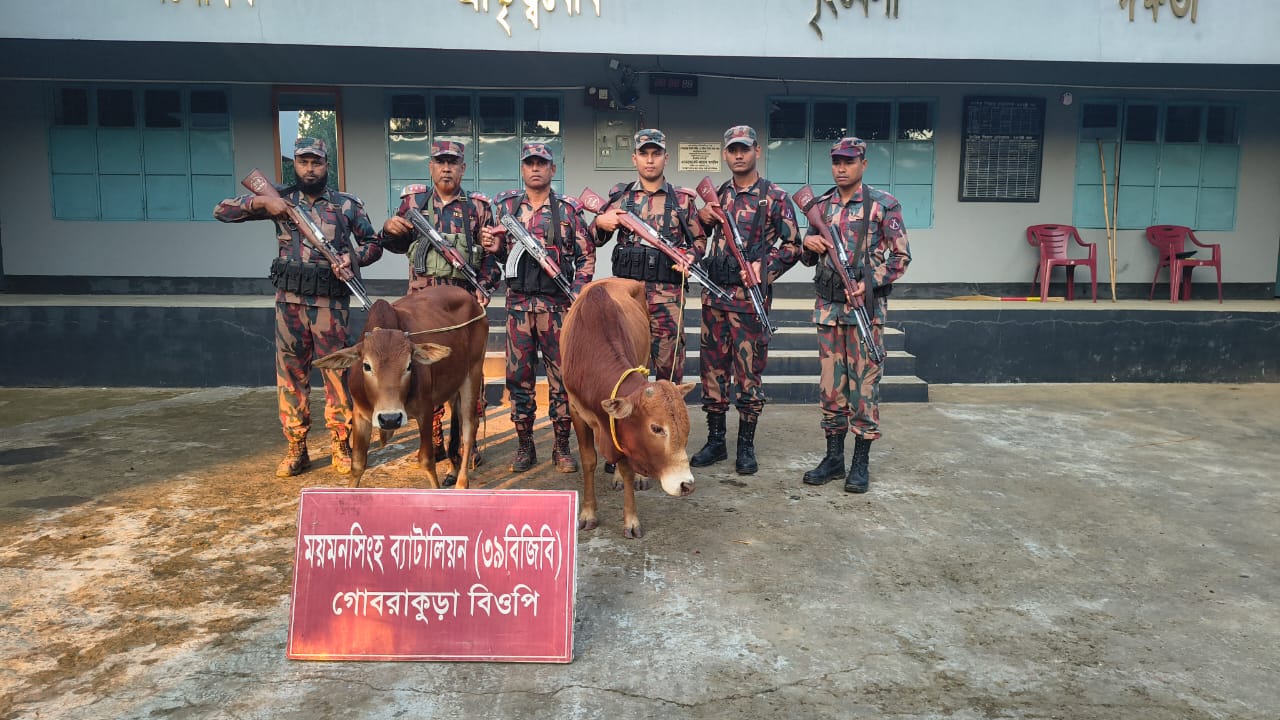 শেরপুর–ময়মনসিংহ সীমান্তে বিজিবি’র অভিযানে প্রায় কোটি টাকার চোরাচালানী মালামাল ও কাভার্ডভ্যান জব্দ