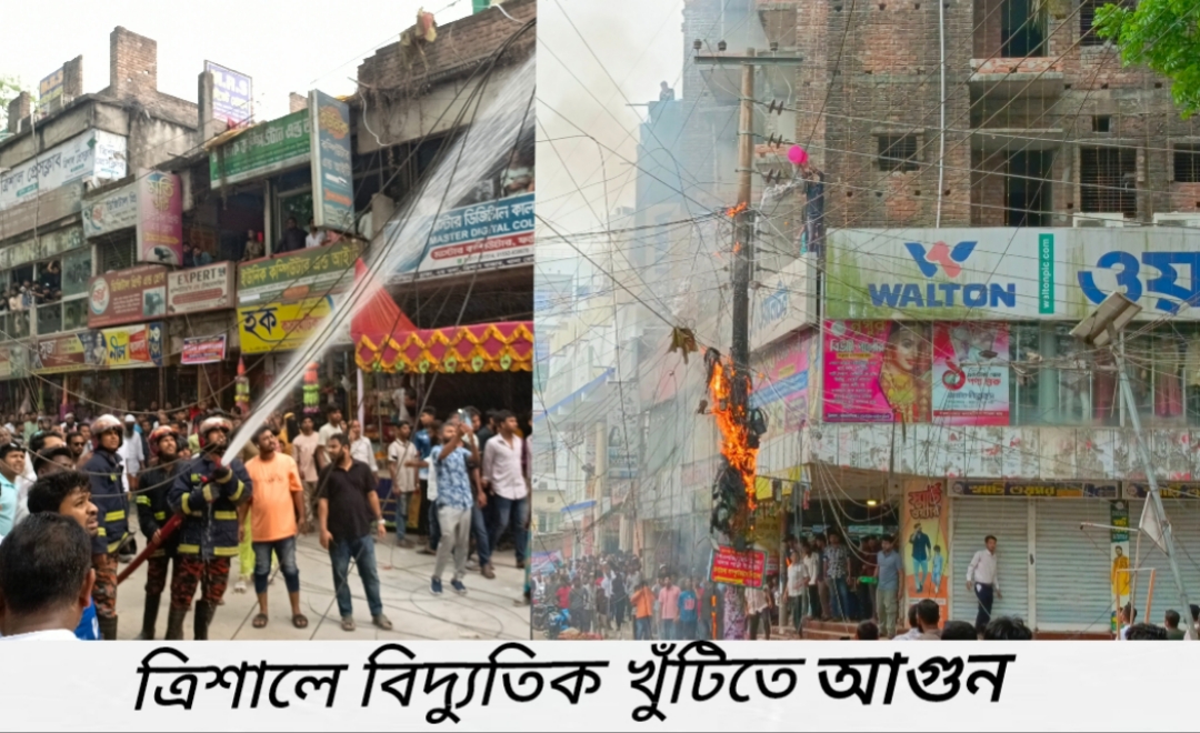 ত্রিশালে বৈদ্যুতিক খুঁটিতে আগুন