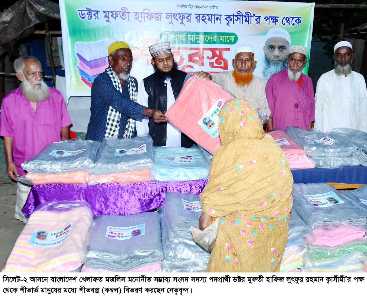 সিলেট-২ আসনে বাংলাদেশ খেলাফত মজলিস মনোনীত সম্ভাব্য সংসদ সদস্য পদপ্রার্থী ডক্টর মুফতী হাফিজ লুৎফুর রহমান ক্বাসীমী’র পক্ষ থেকে শীতার্ত মানুষের