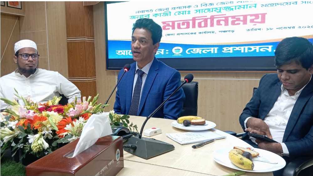 পঞ্চগড়ের নবাগত জেলা প্রশাসক কাজী মো. সায়েমুজ্জামান গতকাল মঙ্গলবার যোগদান করেই বিকেলে জেলা প্রশাসকের সম্মেলন কক্ষে গণমাধ্যম কর্মীদের সাথে মতবিনিময়কালে