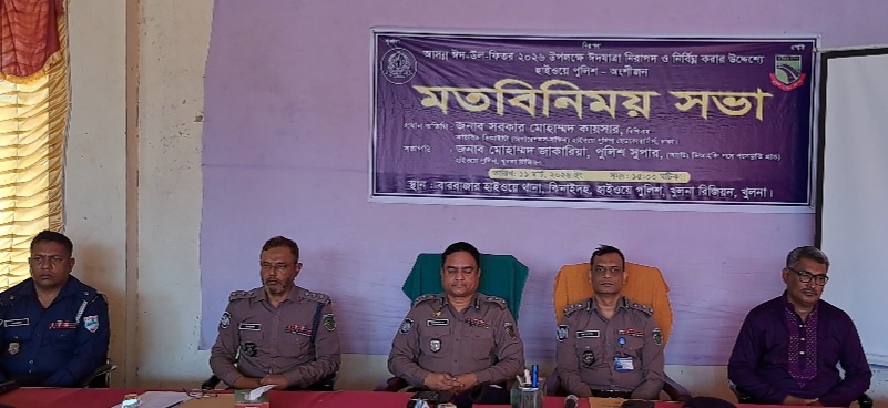 ​আসন্ন পবিত্র ঈদুল ফিতর উপলক্ষে ঘরমুখো মানুষের ঈদযাত্রা নিরাপদ, স্বস্তিদায়ক ও নির্বিঘ্ন করার লক্ষ্যে ঝিনাইদহে হাইওয়ে পুলিশের এক বিশেষ মতবিনিময়