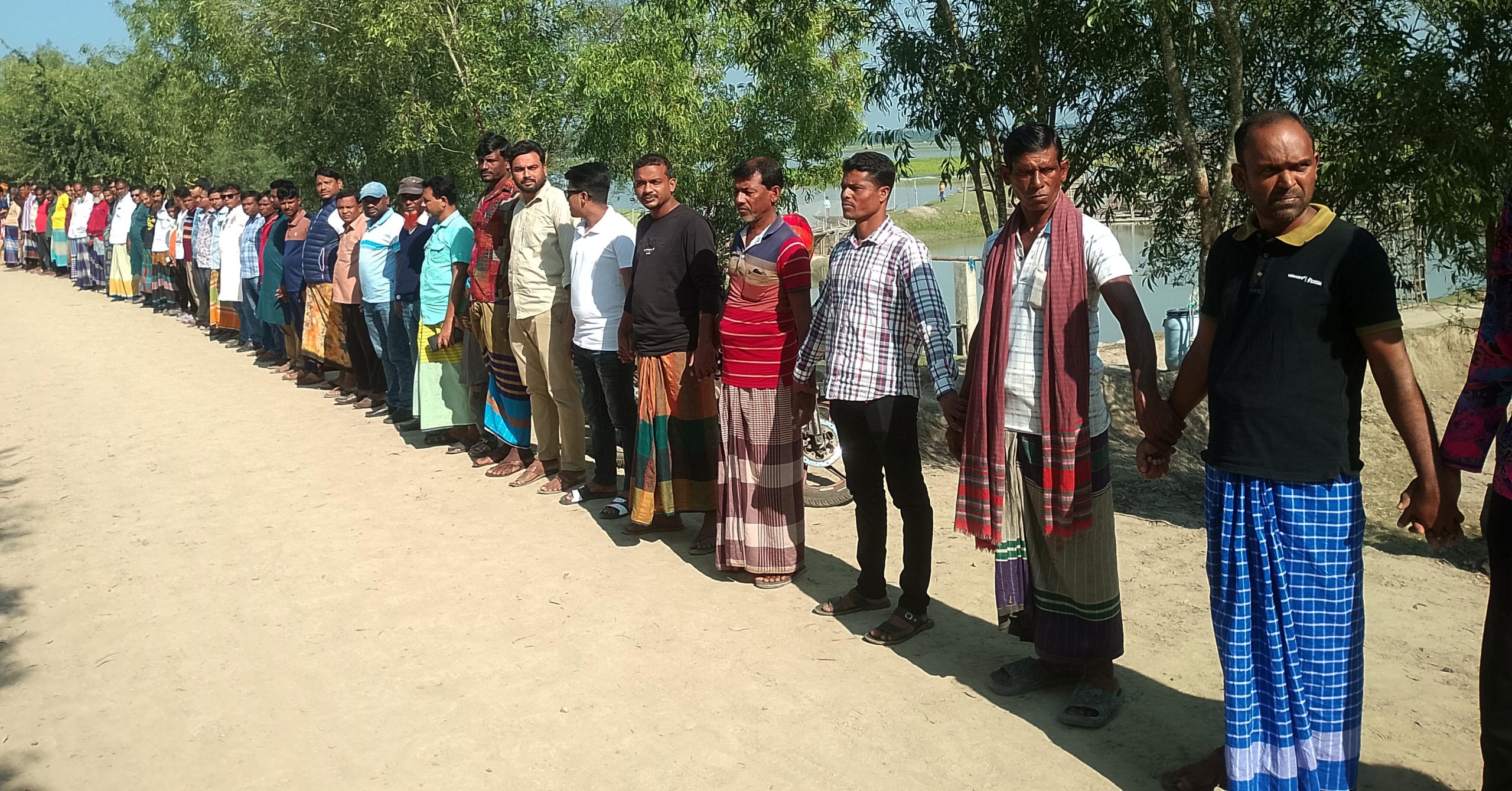 বাগেরহাটে সুইস গেইট নির্মাণের দাবিতে মানববন্ধন